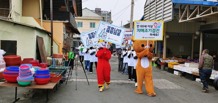 합천군(군수 문준희)은 코로나19로부터 안전하고 건강한 설명절을 위해 25일부터 28일까지 사회적거리두기 실천, 명절 전 코로나19 접종 및 치매조기검진 독려를 위해「코로나극복! 치매극복!」캠페인을 전통시장에서 실시한다고 25일 밝혔다.