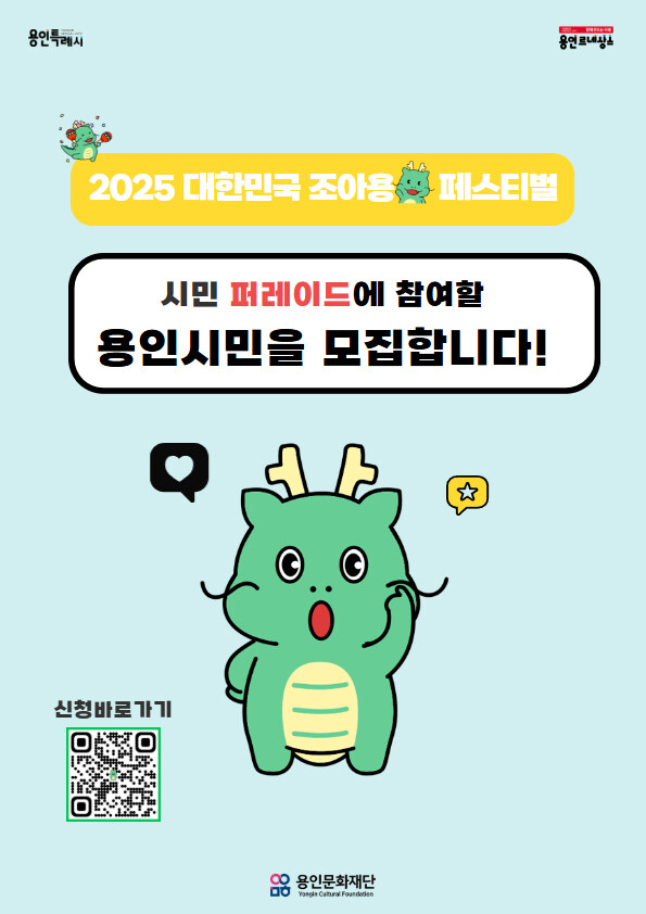 [용인=오왕석 기자] 용인문화재단(이사장 이상일)은 오는 9월 27일(토) 개최되는 『2025 대한민국 조아용 페스티벌』 시민 퍼레이드 참여자를 공개 모집한다.