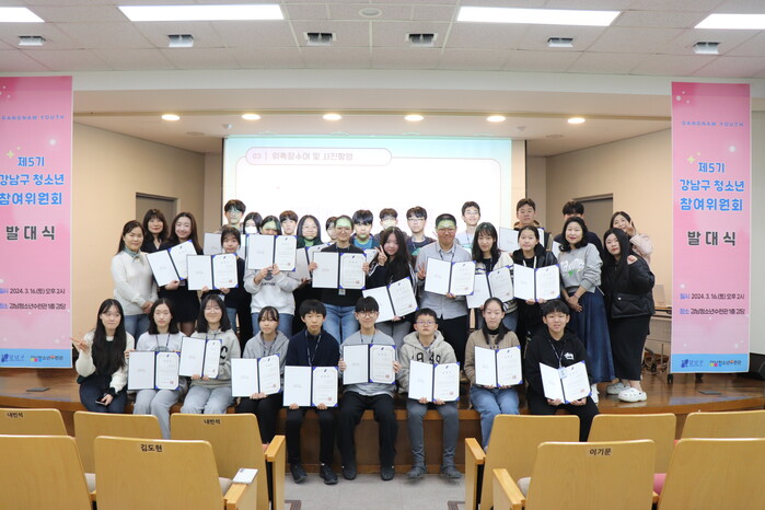 [시민일보 = 이대우 기자] 서울 강남구(구청장 조성명)가 최근 청소년 30명으로 구성된 제5기 강남구 청소년참여위원회를 발족했다.