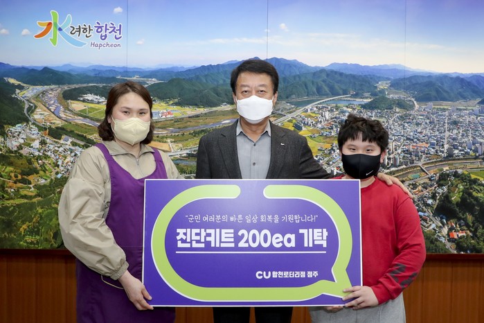 지난 16일 CU합천로터리점 점주 허은경씨는 합천군(군수 문준희)을 방문해 자가진단키트 200세트(120만원 상당)를 전달했다.