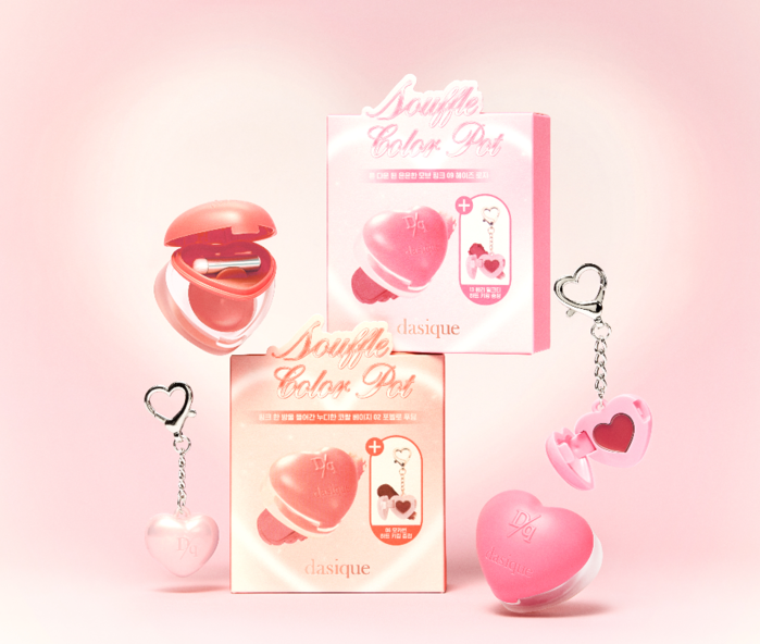 또한 ‘수플레 컬러 팟 기획세트’는 폭신한 수플레 제형으로 부드럽게 블러링되는 기존 ‘수플레 컬러 팟’에 ‘미니 하트 키링’이 함께 구성된 세트다. 키링 안에는 본품과 레이어링할 수 있는 컬러가 함께 들어 있어 휴대성과 활용도를 높였다.