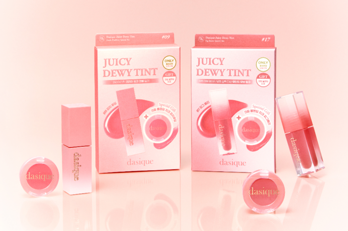 ‘쥬시 듀이 틴트 기획세트’는 끈적임 없이 맑고 투명한 수분광을 선사하는 기존 ‘쥬시 듀이 틴트’와 ‘미니 크림 블러셔’로 구성된다. ‘미니 크림 블러셔’는 립과 동일한 계열의 색감으로 만들어져 조화로운 메이크업 연출이 가능하며, 가볍고 촉촉한 텍스처가 피부에 얇게 밀착되어 자연스러운 생기를 더해주는 것이 특징이다.