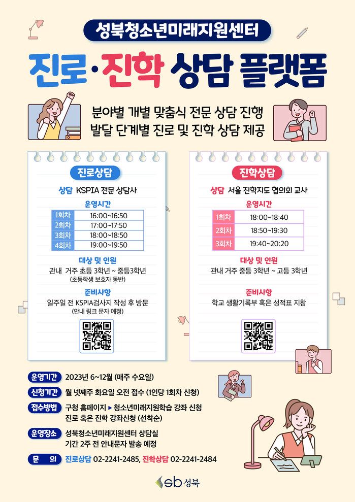 ‘1대1 맞춤형 진로·진학 상담 플랫폼’은 성북청소년미래지원센터(오패산로 3길 87)에서 운영된다.