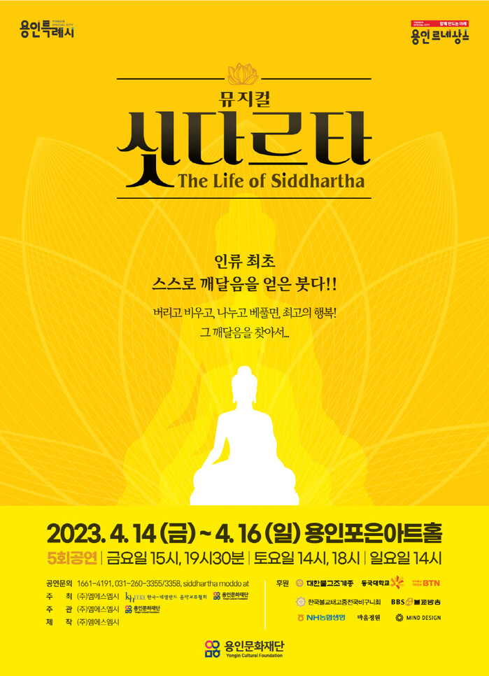 [용인=오왕석 기자] 용인문화재단(이사장 이상일)은 뮤지컬 ‘싯다르타’를 오는 4월 14일부터 16일까지 용인포은아트홀에서 개최한다.