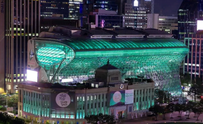 | ▲ 서울빛이 적용된 서울시청. (사진=서울시청 제공) |