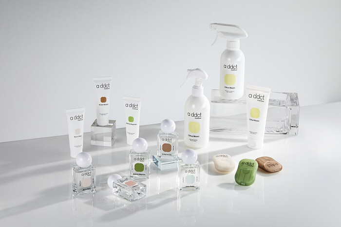 특히 에이딕트 멜로우 오 드 퍼퓸은 CPL, Firmenich, Takasago 등 세계적인 퍼퓸 하우스 출신의 조향사들이 참여한 향임과 동시에, 피부 자극 테스트를 완료하여 보다 안심하여 사용할 수 있다. 메인 시그니처 향은 ‘말차 매그놀리아’로 핸드크림, 종이비누에도 각각 적용하여 향 레이어링 조합으로도 추천한다.