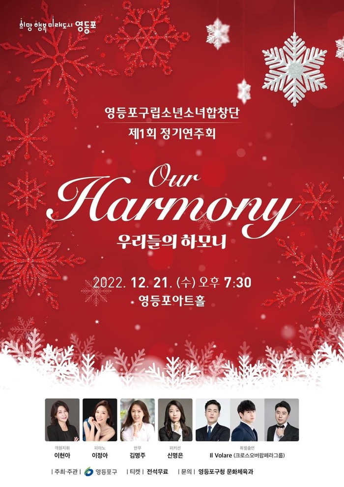 아울러 노래에 관심과 끼가 다분한 7~14세 어린이와 청소년 총 32명으로 구성된 ‘영등포구립소년소녀합창단’의 공연도 펼쳐진다.