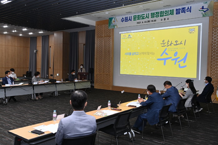 | ▲ 지난해 6월 문화도시 행정협의체가 발족해 문화도시 수원의 비전을 공유하며 회의를 진행하고 있다. (사진제공=수원시청) |