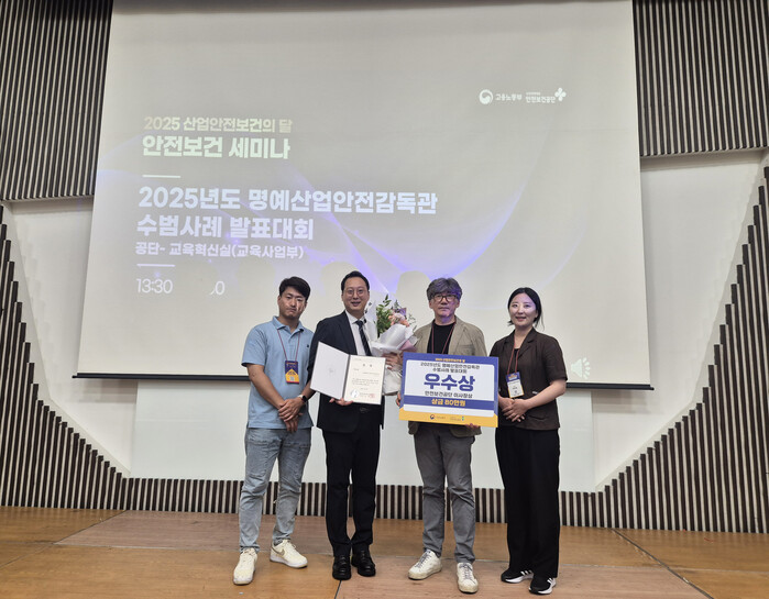 [시민일보 = 문민호 기자] 관악구시설관리공단(이사장 천범룡)은 지난 8일 일산 킨텍스에서 개최된 ‘2025년 산업안전보건의 달’ 기념행사에서 명예산업안전감독관 수범사례를 발표하여 ‘우수상’을 수상했다.