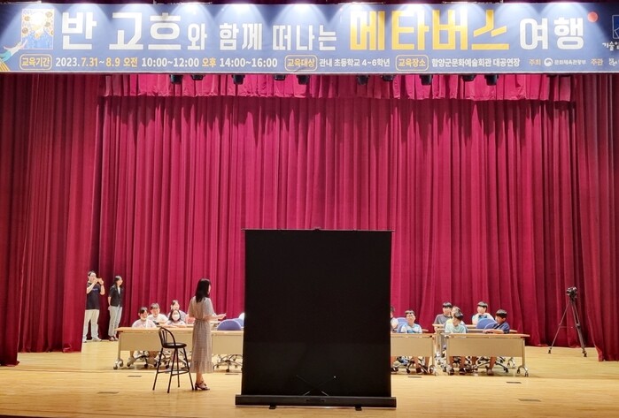 교육은 여름방학기간을 이용하여 지난달 31일부터 이번달 9일까지 8회차로 진행되며, VR로 체험하는 메타버스 세상, AI와 함께하는 창작활동을 비롯하여 메타버스를 이용하여 고흐의 액자 속 탐험과 나만의 3D작품 만들기, NFT로 본인의 그림을 직접 제작해보고 창작된 작품을 직접 전시와 도슨트 체험까지 해보는 과정으로 운영된다.