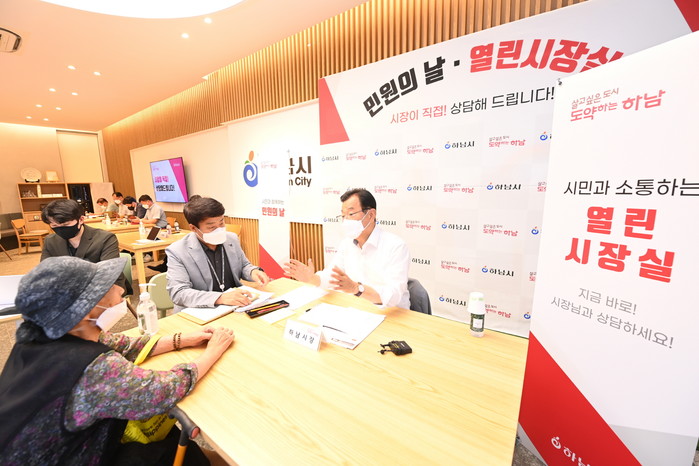 | ▲ 열린시장실 프로그램에 참석한 이현재 시장이 시민과 이야기를 나누고 있다. (사진제공=하남시청) |
