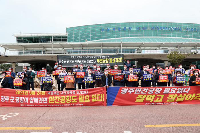 또한 지난달 15일 무안군 현경면 기관·사회단체는 현경면 문화복지센터 준공식 행사에서도 광주 군 공항 무안 이전 결사반대를 다짐했다.