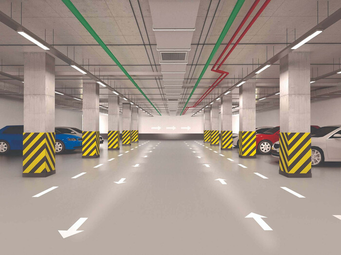 | ▲ 친환경 폴리우레아 바닥재 시스템이 적용된 주차장 이미지. (사진=KCC 제공) |