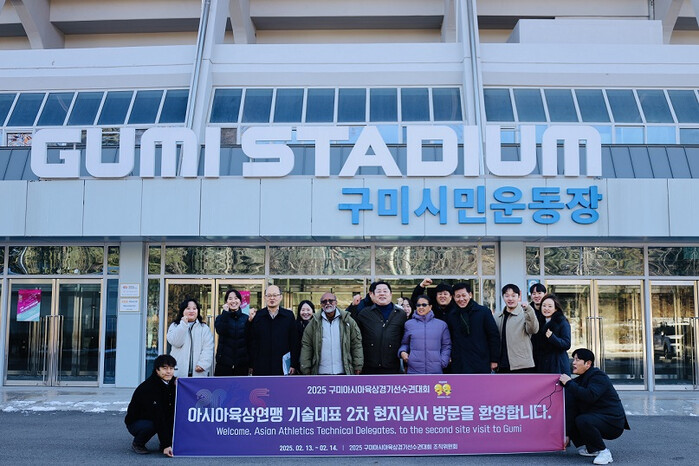[구미=박병상 기자] 2025 구미아시아육상경기선수권대회 조직위원회(공동위원장 김장호, 육현표)가 대회 준비에 속도를 내고 있다. 지난 13일부터 14일까지 아시아육상연맹(AA) 현지 실사단이 구미를 방문하여 경기장과 대회 관련 주요 시설을 점검했다.