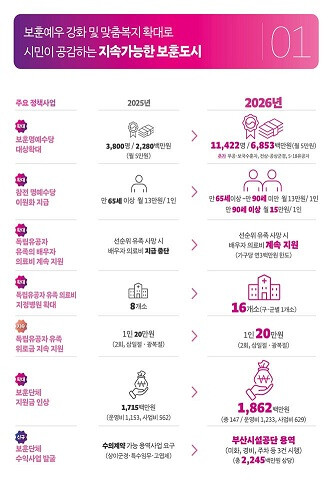 독립유공자 후손과 시민이 함께하는 부산광복원정대를 통해 참여형 보훈을 일상으로 확산하고, 국가유공자 우선주차구역을 늘려 생활 속 예우를 정착시키며, 국가유공자 장례 시 의전 지원을 확대해 국가를 위해 희생한 영웅들의 마지막 순간까지 예우를 다할 계획이다. 아울러 보훈회관을 활용한 문화·복지 프로그램을 운영해 고령 보훈대상자의 사회적 고립을 예방해 나갈 방침이다.