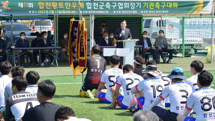 합천축산업협동조합이 주최하고 합천군 축구협회가 주관하는 제11회 합천황토한우배 협회장기 기관축구대회가 지난 17일 합천군청, 합천경찰서 등 관내 7개 기관 200여 명이 참여한 가운데 군민체육공원에서 3년 만에 열렸다.