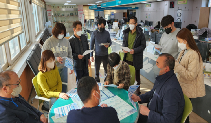 | ▲ 강진군 에너지 절약 점검반이 청내 부서를 방문해 에너지절약 5대 실천 사항 및 개선사항을 홍보하고 있다 / 사진 =강진군 제공 |