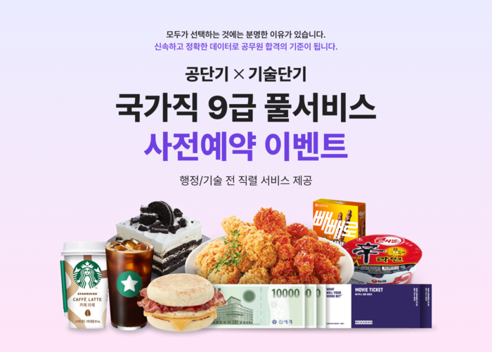 [시민일보 = 여영준 기자] 에스티유니타스의 공무원 시험 전문 브랜드 ‘공단기’와 기술직 공무원 시험 전문 브랜드 ‘기술단기’가 2024년 9급 공무원 시험의 합격을 예측해 주는 ‘풀서비스’의 사전 예약 이벤트를 진행한다고 29일 밝혔다.