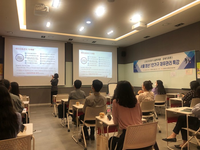 | ▲ 서울 청년 1인가구 재무관리 특강이 진행되고 있다. (사진제공=중구청) |