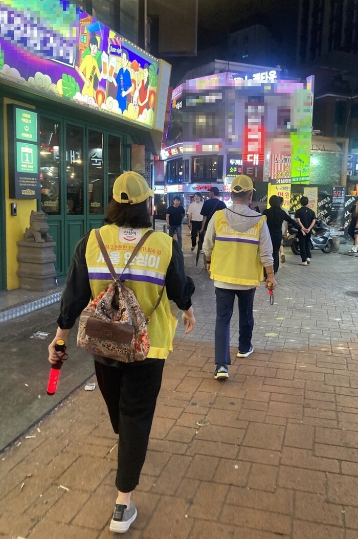 | ▲ 신림역 일대에서 활동하고 있는 안심귀가 스카우트 모습.(사진=관악구청 제공) |