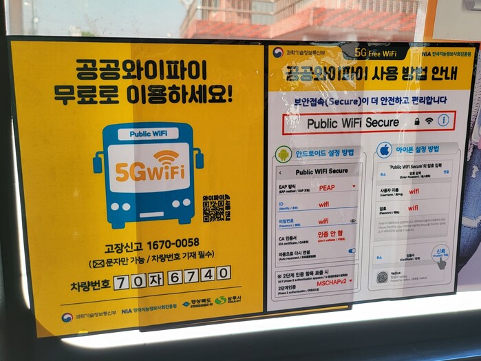 상주시에서는 2019년부터 버스 공공와이파이를 시내버스 44대에서 운영하고 있으며, 기존 LTE 기반보다 3배 이상 빠른 5G 서비스로 확충함으로써 시내버스를 이용하는 시민들이 보다 빠르고 편리하게 통신 서비스을 이용할 수 있게 되었다.