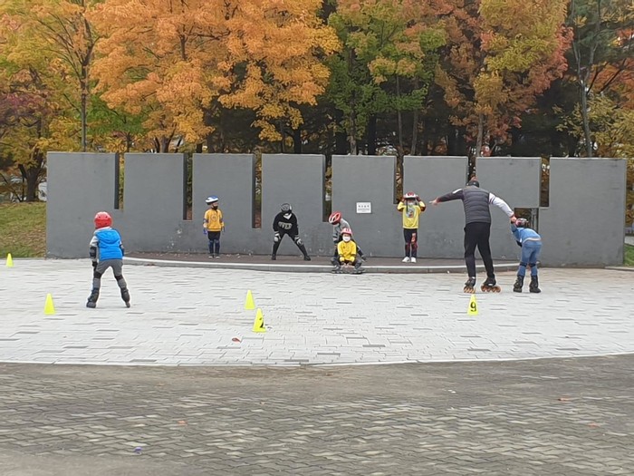 | ▲ '청구 더함께돌봄사업단' 주말 인라인 교실 진행 모습.(사진제공=중구청) |