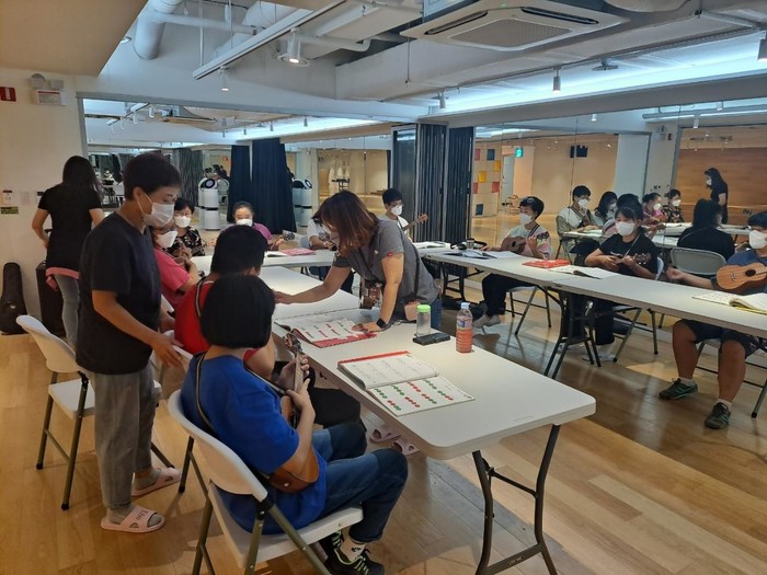 | ▲ '아낌없이주는나무' 우쿨렐레 프로그램 진행 모습.(사진제공=중구청) |
