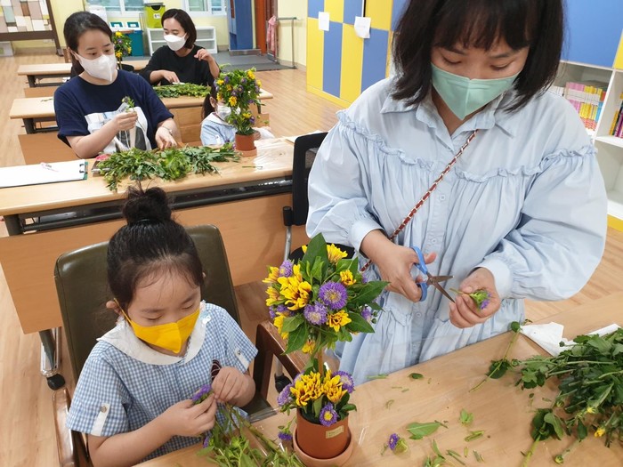| ▲ '더 자람' 맘 앤 키즈 플라워 프로그램 진행 모습. (사진제공=중구청) |