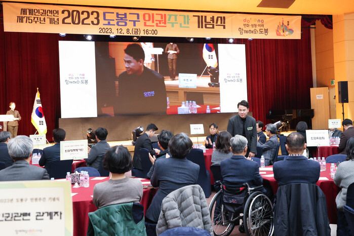 구는 지난 8일 구민의 인권 의식을 높이기 위해 ‘도봉의 인권, 100년의 미래를 그리다’라는 주제로 ‘2023년 도봉구 인권주간 기념식’을 개최했다.