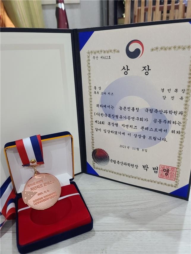 함안군 법수면 강주리 소재 경민목장(강진옥)이 농촌진흥청 축산과학원과 (사)한국목장형 유가공연구회 주관으로 지난 8일 개최한 ‘국내 목장형 자연치즈 경연대회’에서 동상을 수상했다.
