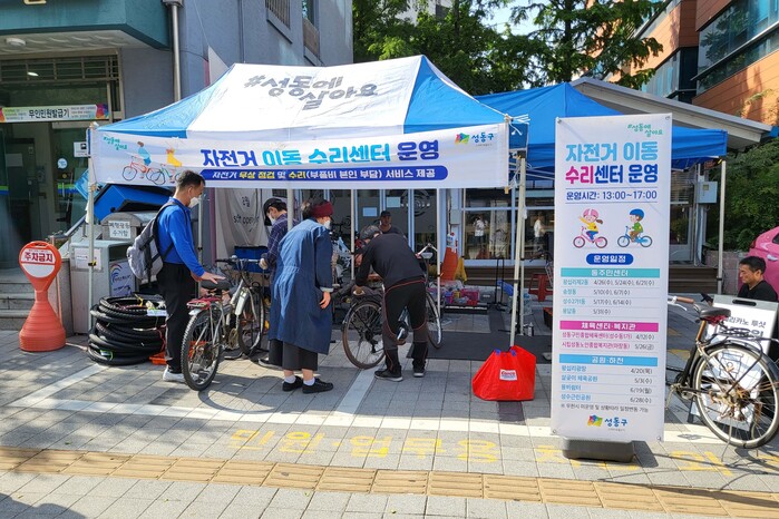 한편, 성동구는 '찾아가는 자전거 이동수리센터' 외 자전거를 상시 수리할 수 있는 상설 자전거 수리센터도 옥수역 인근(옥수동 168-1)에서 중이다. 해당 수리센터는 공휴일을 제외한 평일과 주말 모두 이용할 수 있고, 오전 9시부터 오후 6시까지 운영된다.
