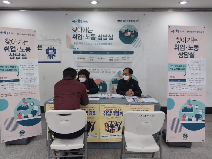 | ▲ 서울대입구역에서 운영하는 취업상담실에서 구민이 일자리 상담을 받고 있다.(사진=관악구청 제공) |