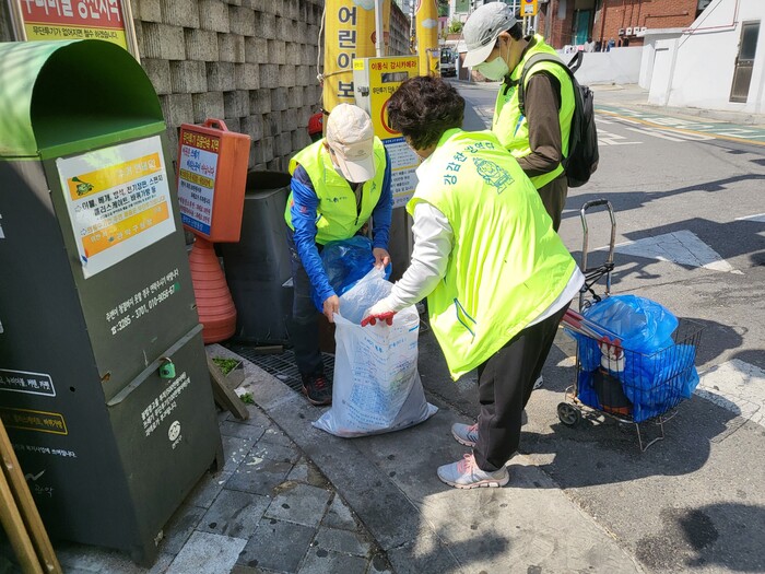 | ▲ 강감찬 관악형 민생안정 일자리 참여자가 청소 작업을 하고 있다.(사진=관악구청 제공) |