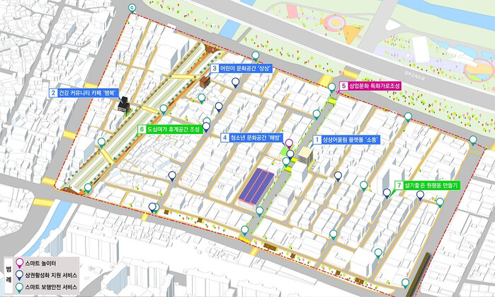 이번 사업의 주요 내용은 상권 활성화 서비스, 스마트 보행자 안전 서비스, 청년층을 위한 스마트 놀이공간 구축 등 총 세 가지다.