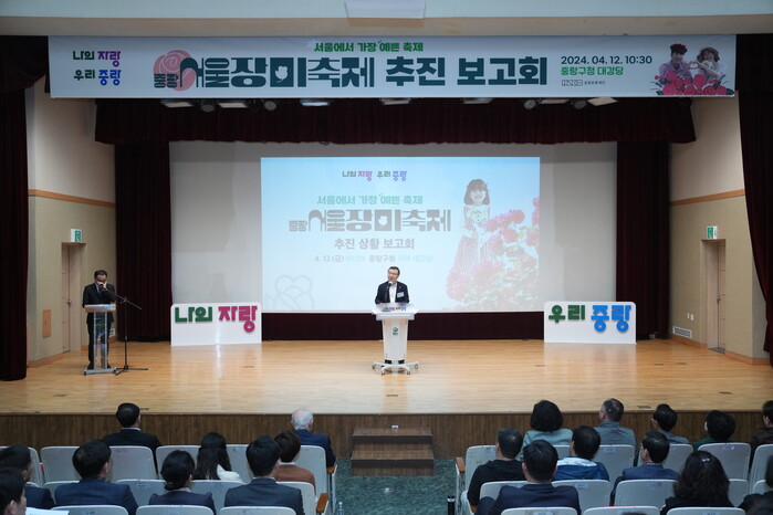 | ▲ 서울장미축제 추진 보고회에 참석한 류경기 구청장이 축제에 대해 설명하고 있다.(사진=중랑구청 제공) |