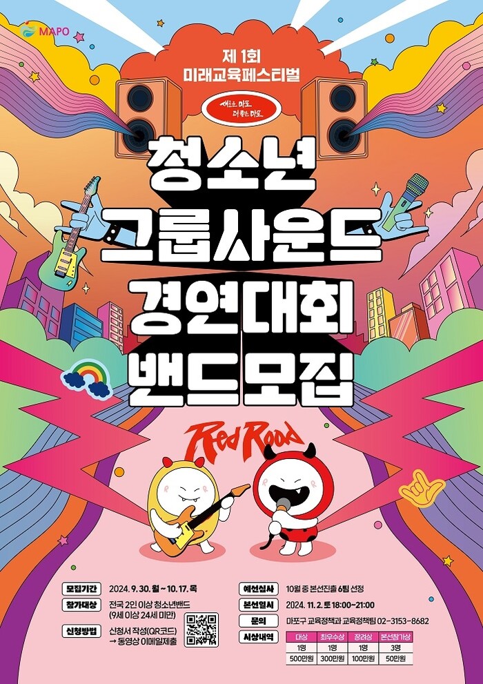 [시민일보 = 문민호 기자] 서울 마포구(구청장 박강수)가 ‘청소년 그룹사운드 경연대회’에서 무대를 펼칠 청소년 밴드를 오는 17일까지 모집한다.