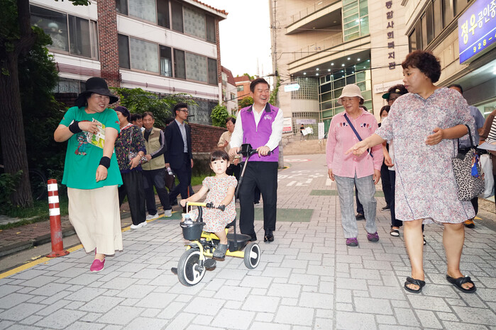 이날 이 구청장은 주민들과 함께 밤거리를 걸으며 안전에 대한 의견을 듣고 폐쇄회로(CC)TV 확충, 자율방범대 활성화를 통해 ‘안전하고 든든한 동네’를 조성하겠다고 답했다.
