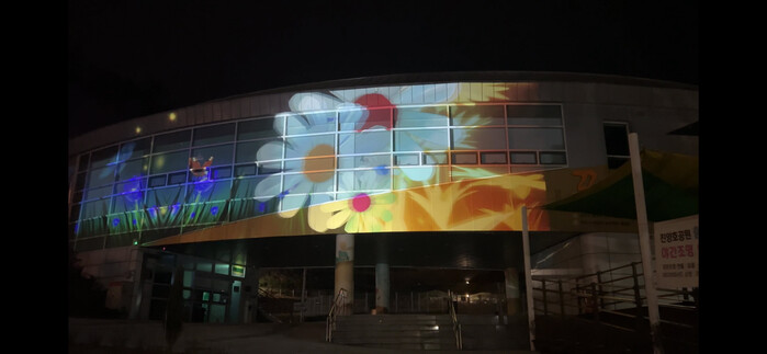 진주시는 4월 1일부터 진양호공원 꿈키움동산 건물 외벽을 이용한 프로젝션 맵핑 영상 콘텐츠를 추가 상영한다.