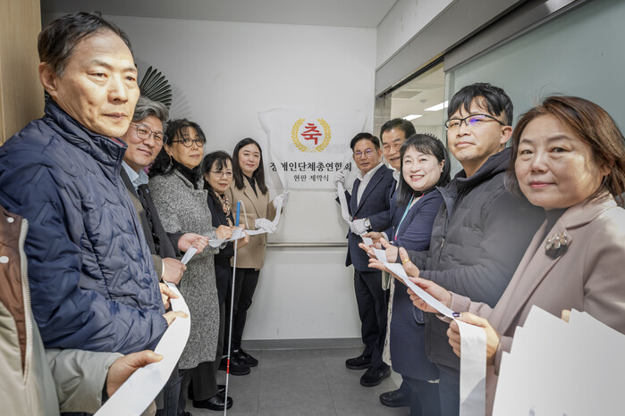 | ▲ 마포구장애인단체총연합회 현판 제막식. (사진=마포구청 제공) |