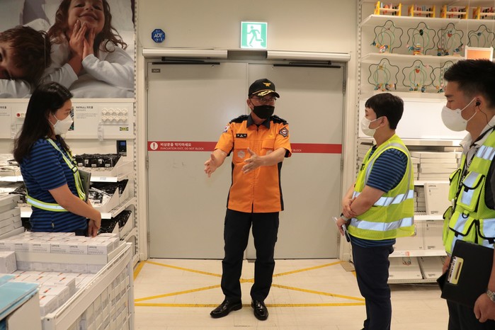 주요 내용으로는 ▲소방시설 피난·방화시설 등 연동시스템 작동상황 확인 ▲대형 판매시설 화재사례 재고 ▲이케아 고양점 화재경보 발생 사례를 통한 이용객 피난.대피 조치 등 관계인 초동 대처 요령 등을 컨설팅하였다.