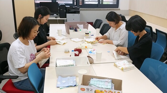 센터 관계자는 “학생들에게는 어색한 손바느질 활동의 어려움에도 학부모님들의 도움으로 즐거운 봉사활동이 되었다”고 전했다.