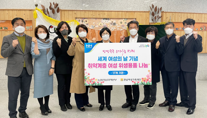 | ▲ 전남농협, 세계 여성의날 기념 취약계층 위생용품 지원(출처=농협전남지역본부) |