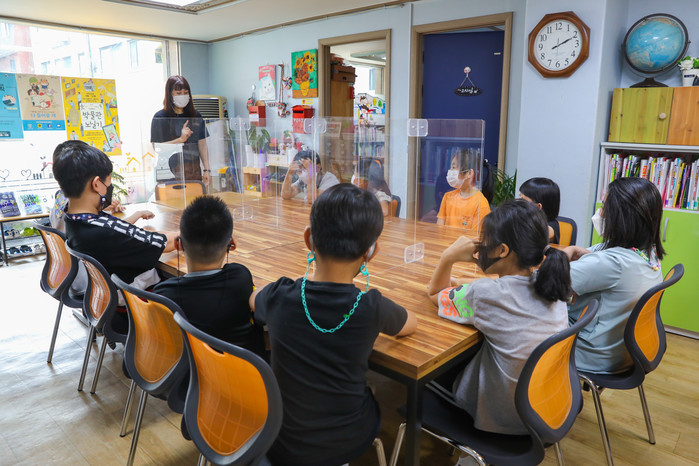 | ▲ 지역아동 복지센터에서 아이들이 지도교사와 수업을 진행하고 있다. (사진제공=서초구청) |