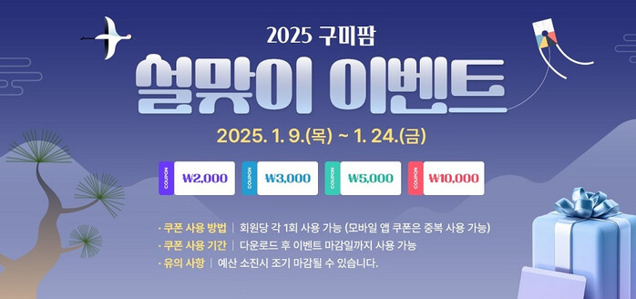 행사는 1월 9일부터 1월 24일까지 진행되며, 전국 고객들이 믿고 선택할 수 있는 구미 농특산물을 한자리에서 만나볼 수 있다.