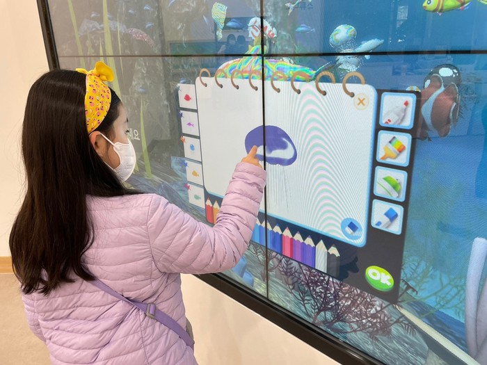 디지털 스케치북의 경우 대형 스크린에 물고기를 그리면 물고기가 3D로 구현되는 프로그램이며, 스마트 테이블은 다중 터치가 가능해 여럿이 함께 참여할 수 있는 프로그램으로 큰 인기를 끌고 있다.