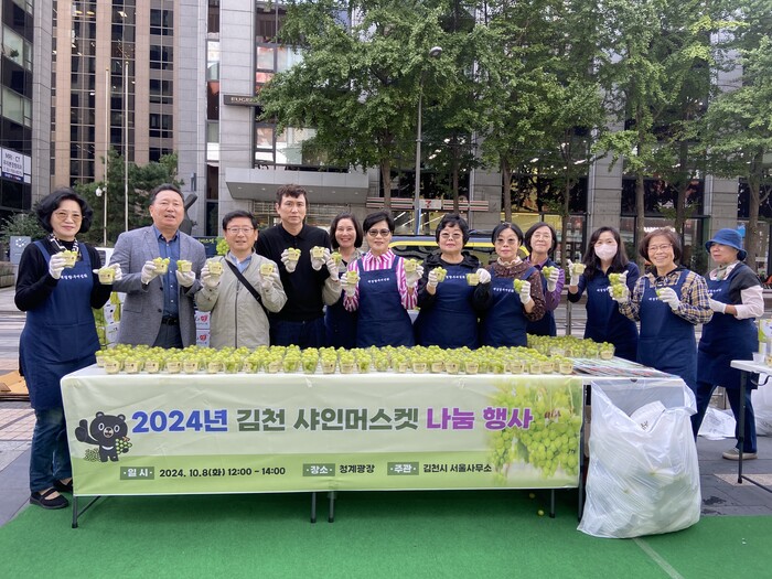 서울의 주요 관광지(경복궁, 광화문) 인근 청계광장에서 진행된 이번 행사는 일반 시민, 직장인, 관광객, 그리고 외국인들까지 찾아와 김천 샤인머스캣을 맛보기 위해 길게 줄을 섰다. 샤인머스캣에 대한 큰 관심으로 준비한 물량을 모두 소진하며 성황리에 행사가 종료됐다.