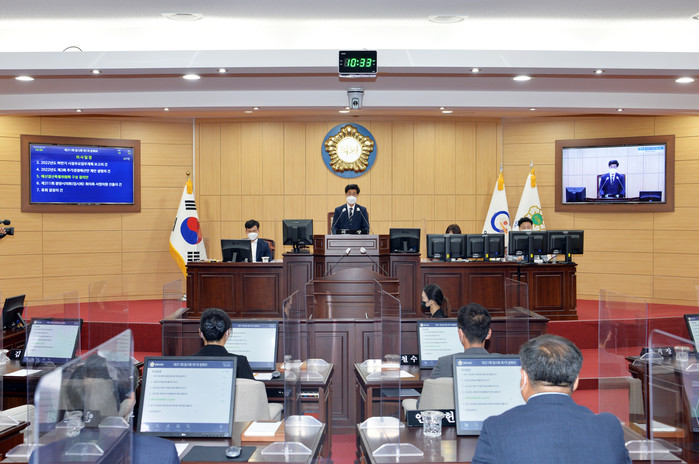 임시회 첫날 제1차 본회의에서 예산결산특별위원회 구성 및 위원 선임, 2022년도 하반기 시정주요업무계획 및 제3회 추가경정예산안 제안설명 등을 다뤘다.