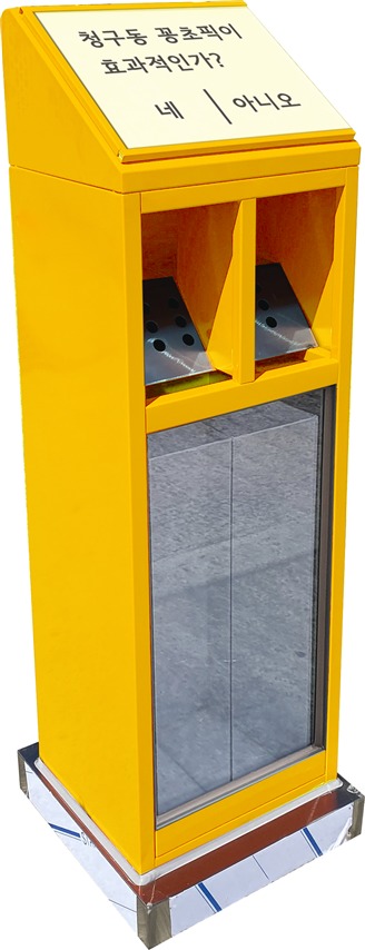 청구동엔 이달 말 담배꽁초 수거함 '청구동 꽁초픽'을 12곳에 설치한다. 하루 국내 1200만개의 꽁초가 버려지고, 이로 인해 바다로 흘러가는 미세 플라스틱이 일평균 0.7톤에 달한다는 환경부 발표에 따라, 동네에 상습적으로 담배꽁초가 버려지는 지점마다 수거함을 설치하게 된 것이다. 일부 수거함은 담배 꽁초를 활용해 주민투표가 가능한 '꽁초픽' 형태로 운영된다.