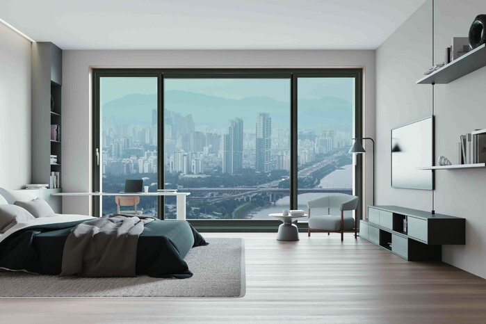 디자인에도 차별점을 더했다. 미니멀 인테리어 트렌드에 맞춘 창짝 80mm, 창틀 60mm의 슬림한 프레임으로 유리 면적을 확대해 채광과 개방감을 높였으며 라운드 형태의 창짝 모서리와 가스켓 마감으로 고급스러움을 더했다. 여기에 △화이드우드 △애니그레 △애쉬 △다크그레이 등 4가지 색상을 옵션으로 준비해 디자인 선택의 폭도 넓혔다.