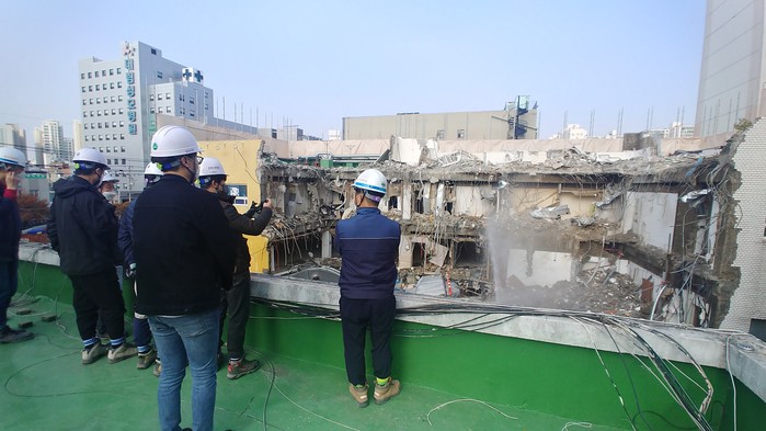 | ▲ 공무원과 전문가가 지역내 해체공사장을 찾아 동절기 대비 안전점검을 하고 있다. (사진제공=동작구청) |